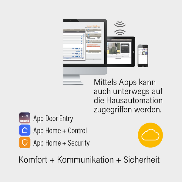 Mit der App Home + Control können verschiedene Hausautomationssysteme wie „MyHome“ und „with Netatmo“ sowie smarte Thermostate von Bticino und Netatmo gesteuert werden. So können beispielsweise die Steuerung und Verwaltung von Beleuchtung, Beschattung und Temperatur vorgenommen werden. Zudem können verschiedene Szenarien und Lichtstimmungen abgerufen werden, wie zum Beispiel beim Aufwachen, beim Verlassen des Hauses oder beim Fernsehen – und sogar eigene Szenarien erstellt werden. Darüber hinaus hilft die Energieverbrauchsanzeige, die Stromkosten im Überblick zu behalten.